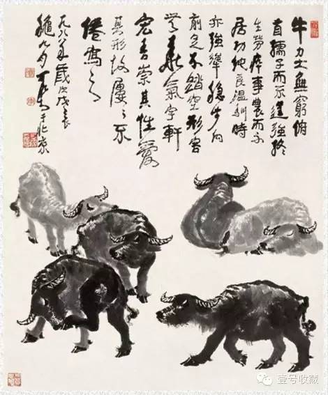 他画的牛多一笔嫌多,少一笔不够,这就是他多年修炼艺术的结果。李可染把自己的画室也命名为“师牛堂”,表达了他以牛为师、刻苦进取的艺术追求。